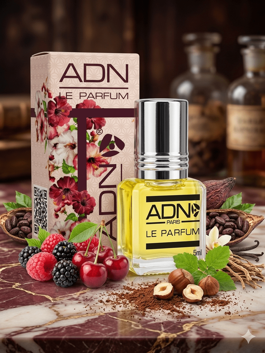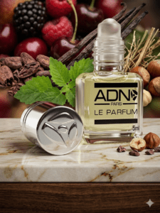 Note de Fond : Cacao, Vanille, Patchouli, Vétiver, Noisette